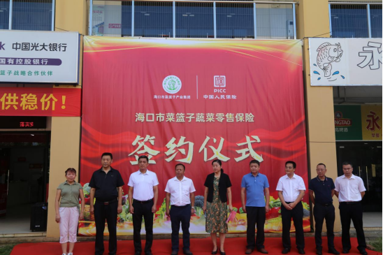 2021年 8月26日上午,海口市菜篮子集团、海口市金贸文华市场部分商户分别与人保财险海南省分公司、太平洋产险海南分公司签订了平价蔬菜零售保险保单,标志着海口市平价蔬菜零售保险试点工作正式启动。
