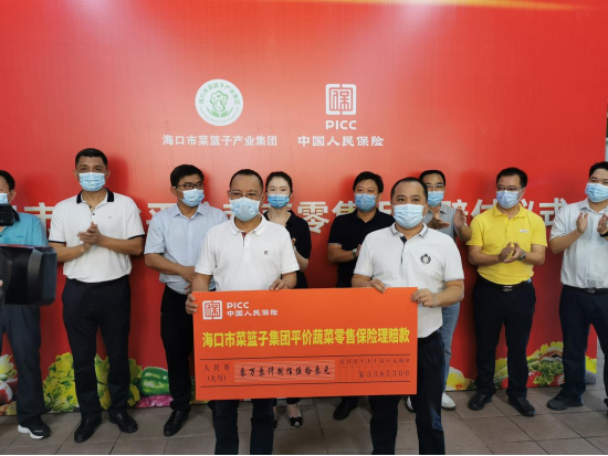 2021年10月1日,海口市菜篮子集团与人保财险海南省分公司举行海口市首个平价蔬菜零售保险赔付仪式。人保财险海南省分公司践行保险承诺,向海口市菜篮子集团支付保险赔款近3.4万元,赔付率达104%,市菜篮子集团自缴保费6500元,赔款金额是自缴保费的5.2倍。