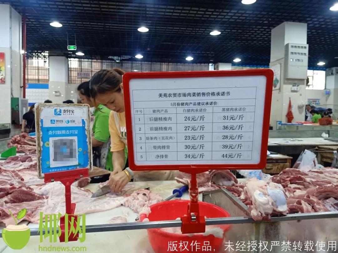 美苑农贸市场一猪肉摊主告诉记者,猪贩子送来的宰杀好的白条猪每斤19元,她现在后腿精瘦肉(白猪)卖每斤24元,黑猪每斤31元。前腿精瘦肉(白猪)卖每斤27元,黑猪每斤36元。净排骨(白猪)每斤34元,黑猪每斤44元。