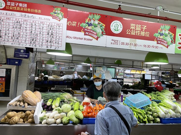 受今年第 9 号台风“马鞍”影响,本岛北部地区有暴雨到大暴雨天气。海口市菜篮子产业集团为做好疫情及台风影响期间“菜篮子”保供惠民工作,加大调运投放,保障末端网点销售,全力保障平价菜稳定供应。