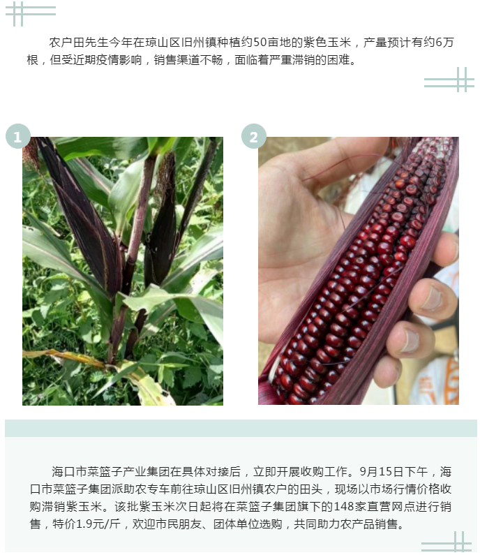 菜篮子集团助农专车开到田头,为滞销紫玉米打开销路