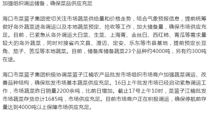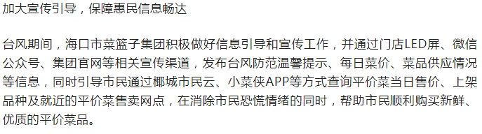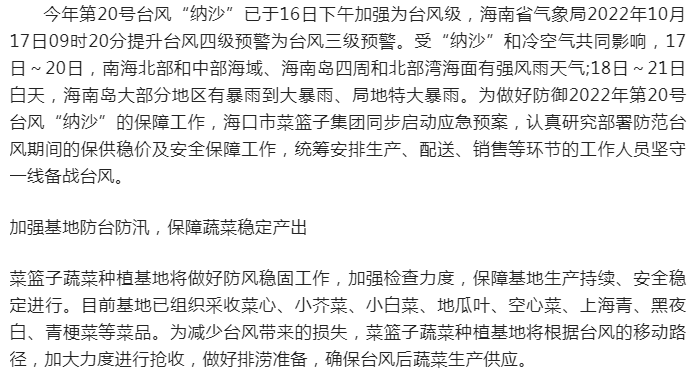 海口市菜篮子集团全力防范第20号台风“纳沙” 多举措保障市民平价菜稳定供应