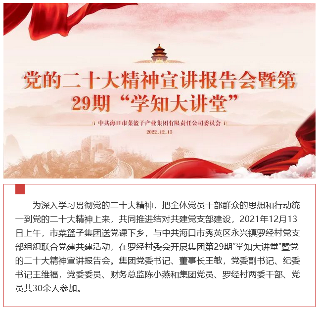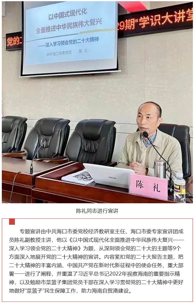 市菜篮子集团召开二十大精神宣讲报告会暨第29期“学知大讲堂”