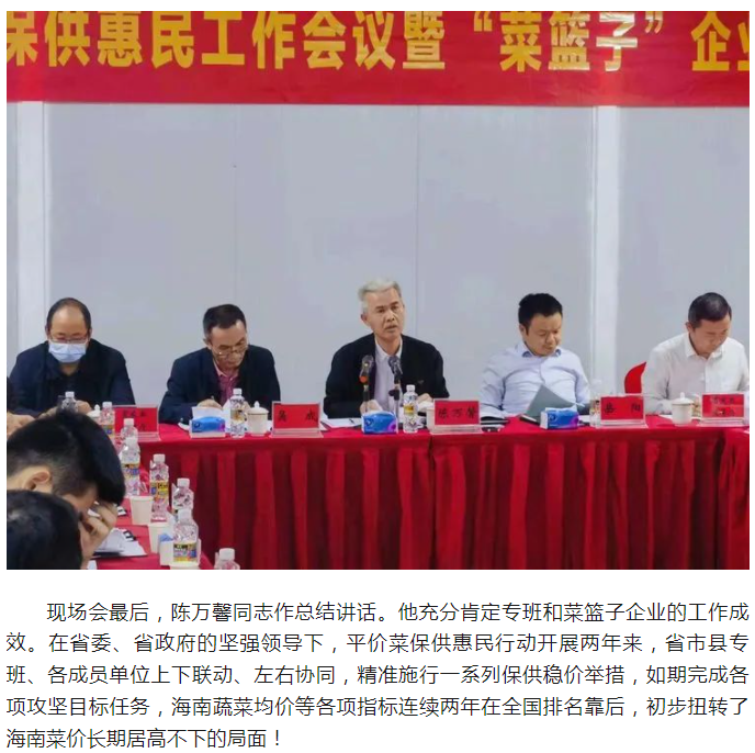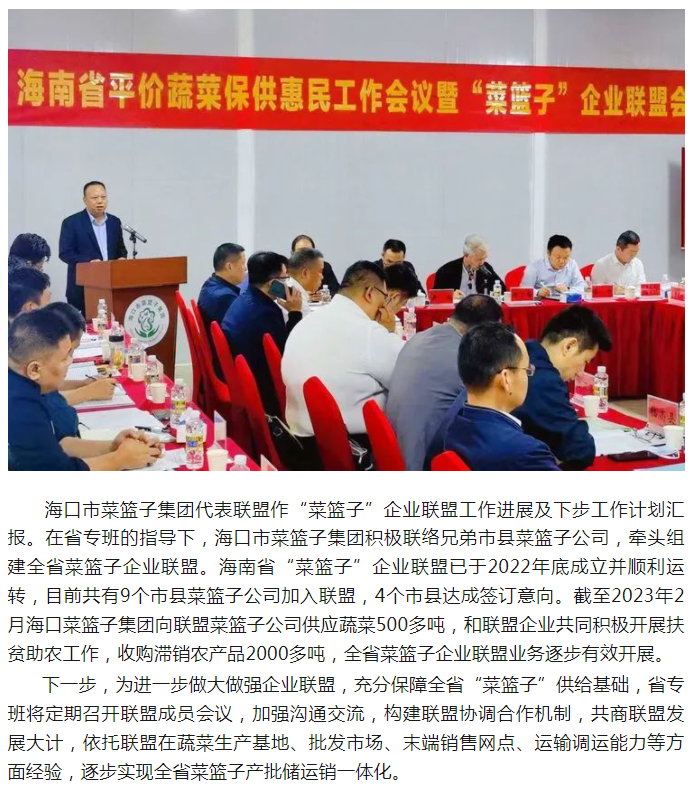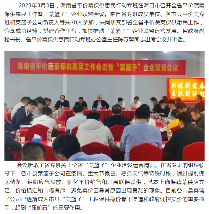 海南省平价蔬菜保供惠民工作暨“菜篮子”企业联盟会议在海口召开