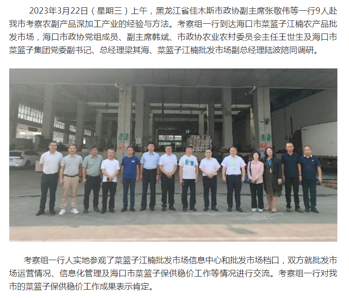 黑龙江省佳木斯市政协赴海口市菜篮子江楠农产品批发市场考察