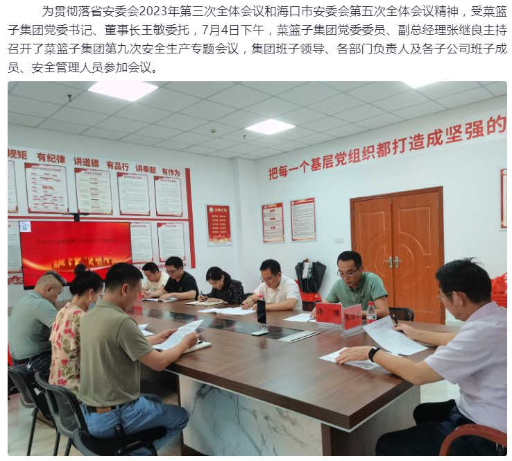 市菜篮子产业集团召开2023年第九次安全生产专题会议