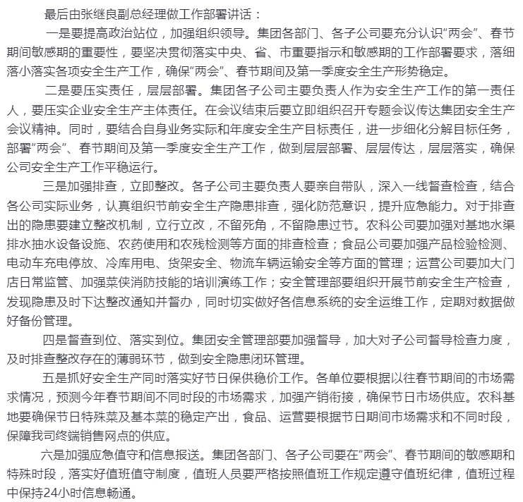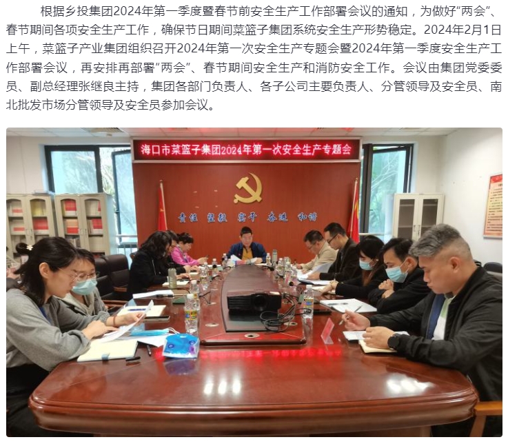 菜篮子产业集团组织召开2024年第一次安全生产专题会暨2024年第一季度安全生产工作部署会议