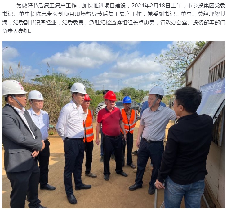 市乡投集团党委书记、董事长陈忠带队督导节后复工复产工作
