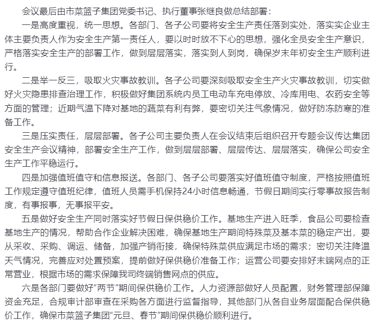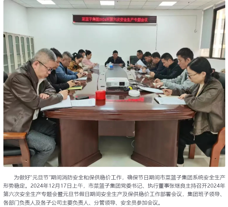 市菜篮子集团召开2024年第六次安全生产专题会暨“元旦节”期间安全生产及保供稳价工作部署会议