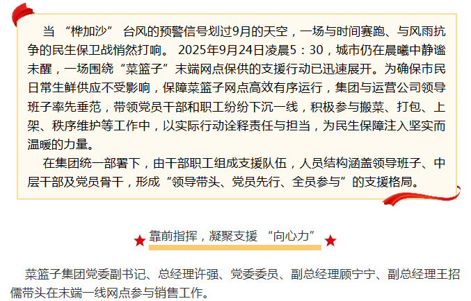 积极应对守民生!菜篮子集团上下联动共同做好“桦加沙” 台风防御保供稳价工作,筑牢民生保障线