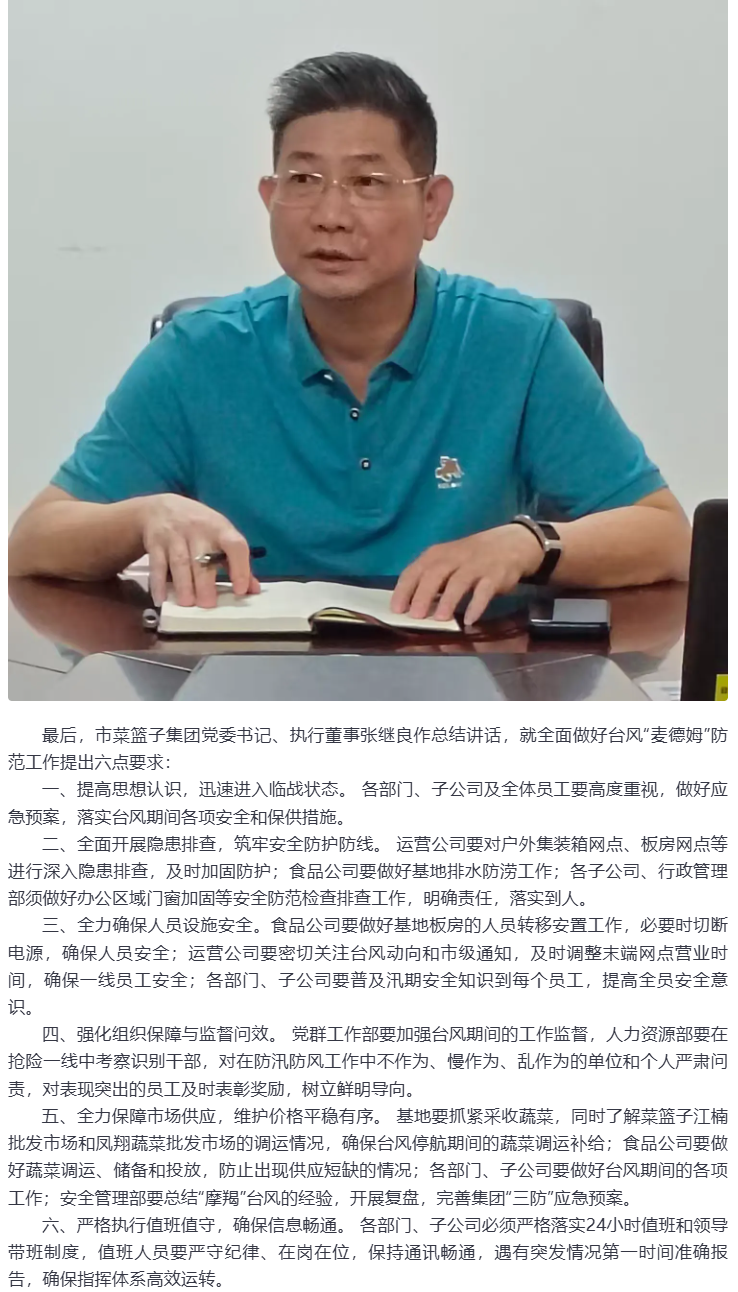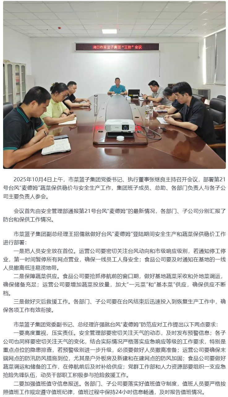 市菜篮子集团召开防御台风“麦德姆”蔬菜保供稳价及安全生产工作部署会议