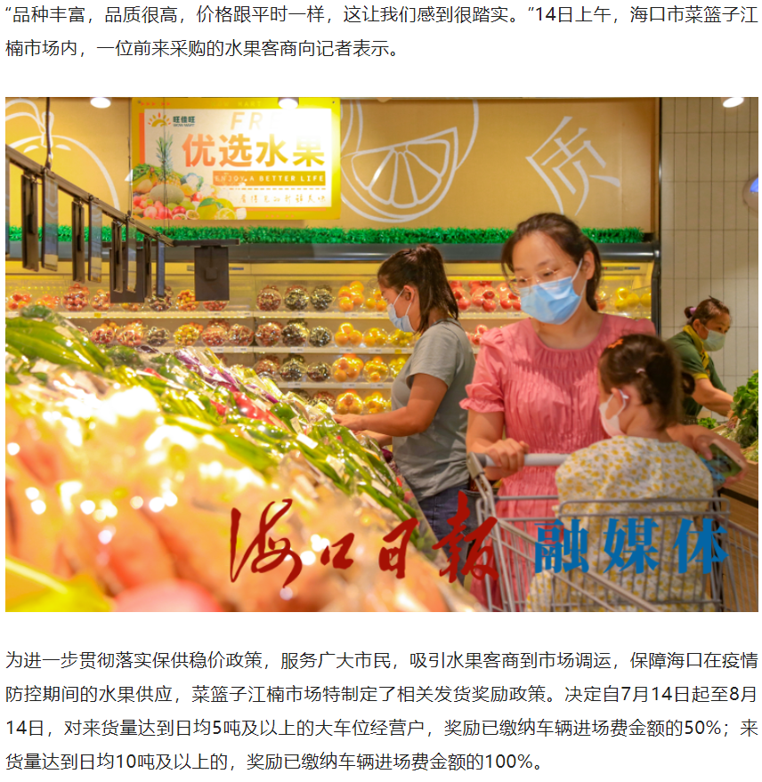 【海口日报】果盘子管够!菜篮子江楠市场水果到货量翻番