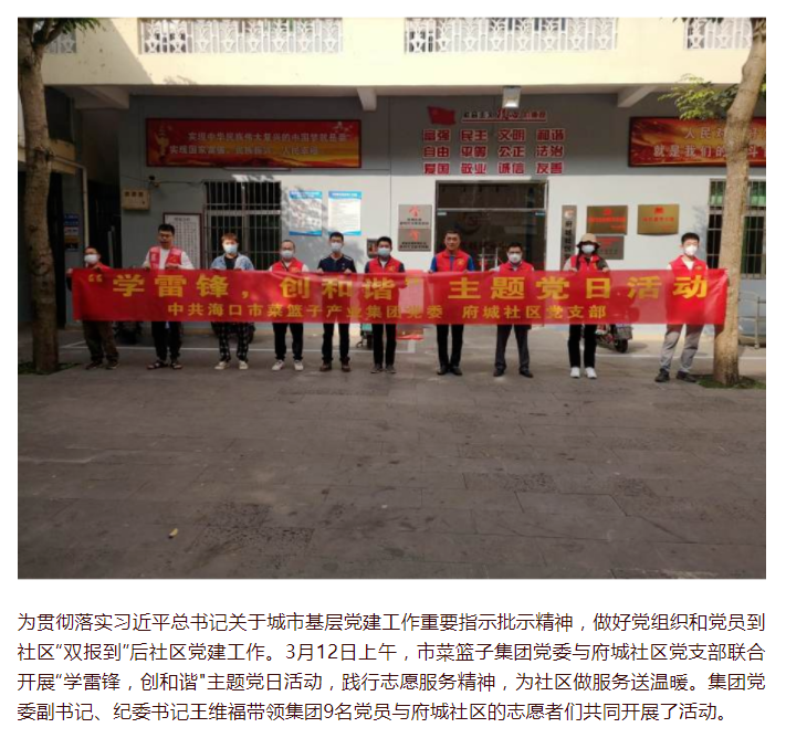 “学雷锋,创和谐"——市菜篮子集团与府城社区联合开展党员在社区主题党日活动