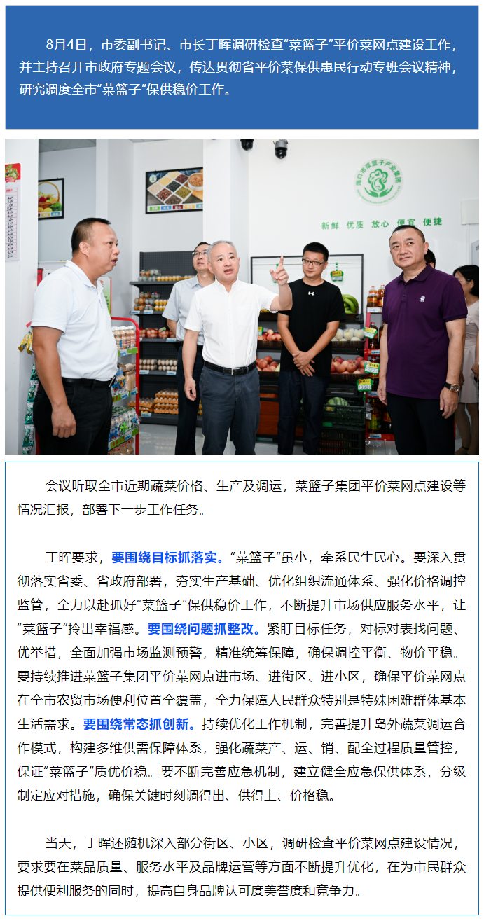 【海口日报】丁晖调研平价菜网点建设并主持召开市政府专题会议