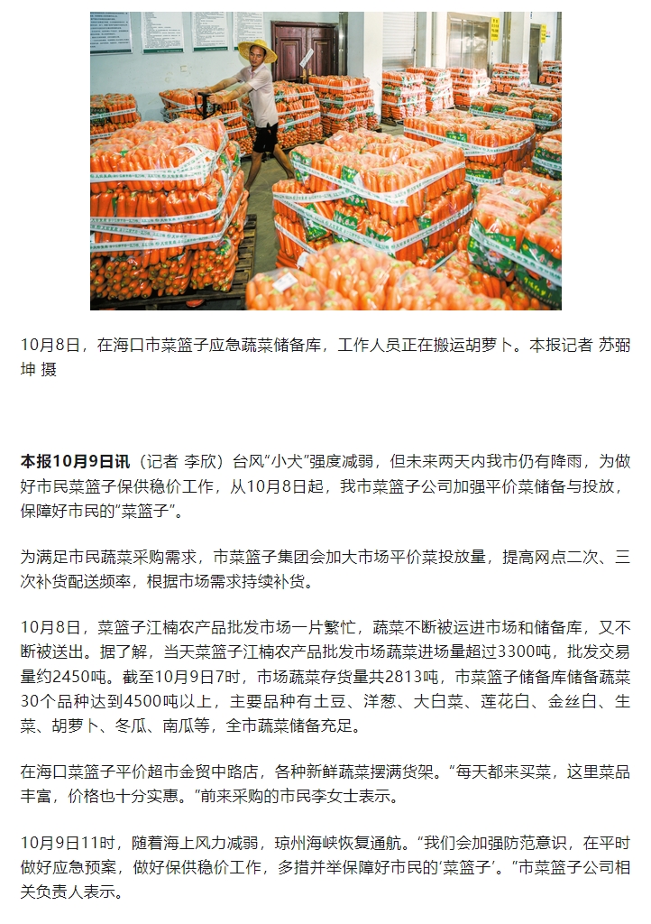 首页 / 信息中心 / 媒体报道 / 【海口日报】加大投放保障平价菜量足价稳