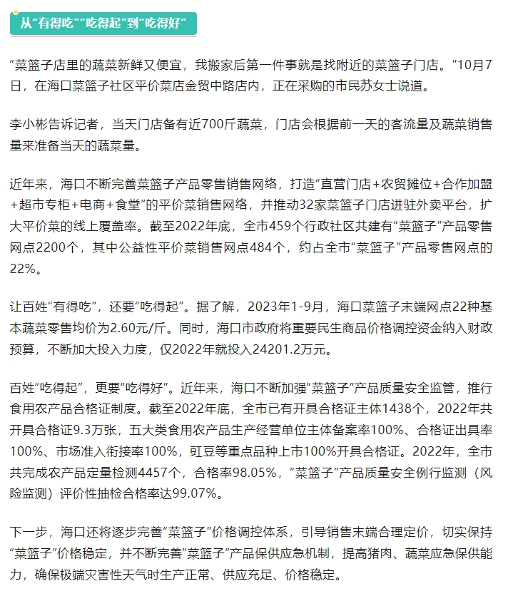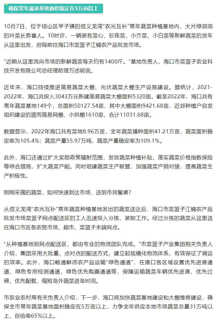 【海口日报】扩产能 畅流通 保供应!海口居民“菜篮子”越拎越舒心