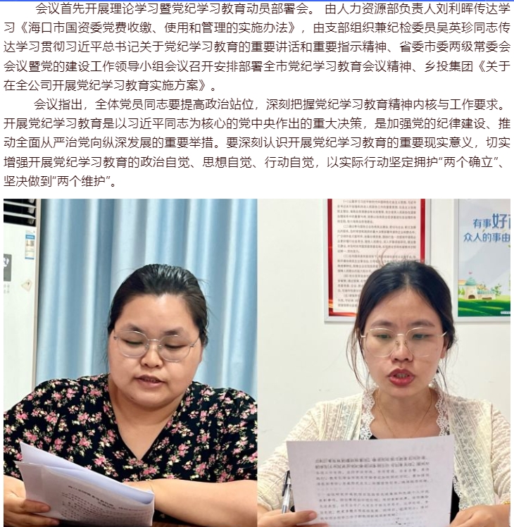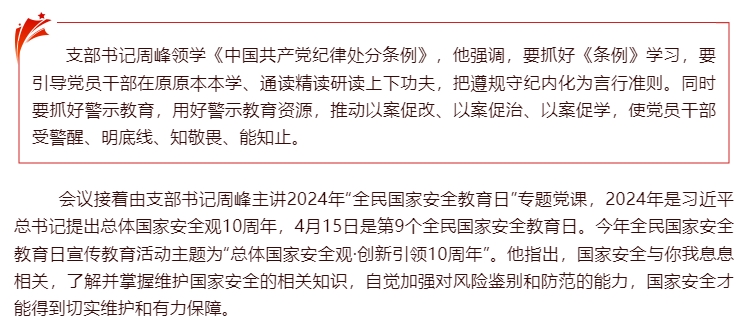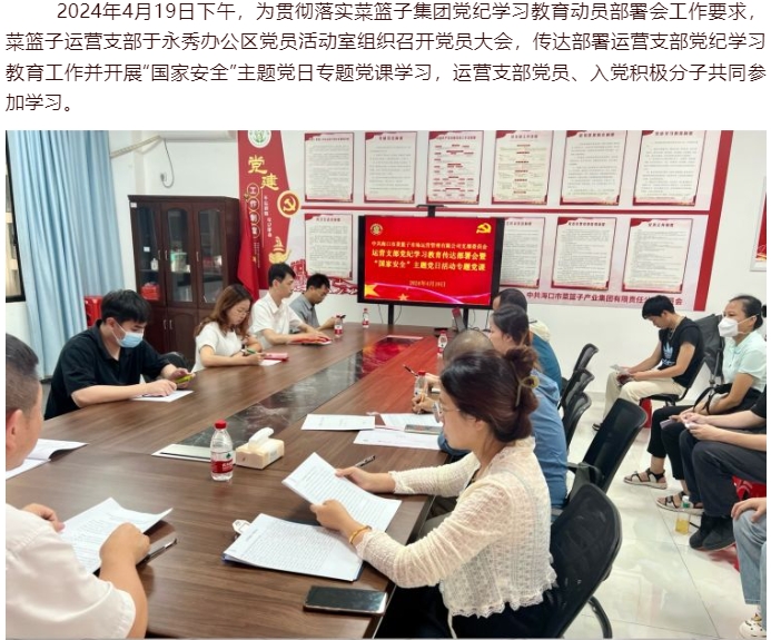 菜篮子运营支部组织召开党员大会传达部署党纪学习教育工作暨开展“国家安全”主题党日活动专题党课