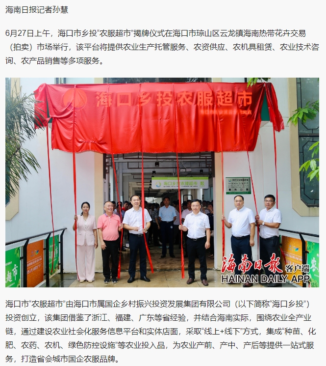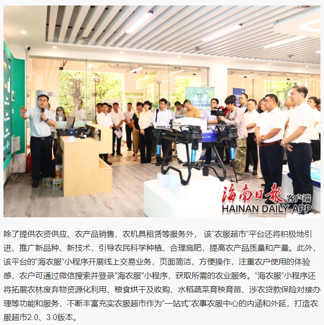 【海南日报】海口开设“农服超市” 提供农业生产一站式服务