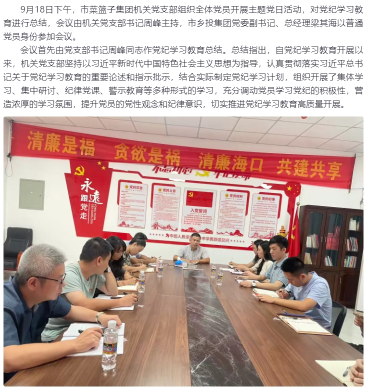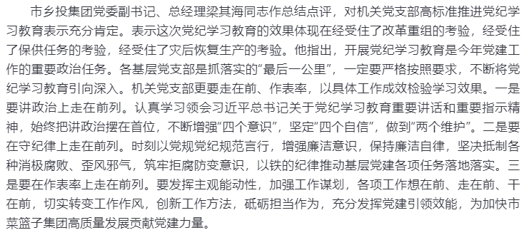 市菜篮子集团机关党支部开展主题党日活动总结党纪学习教育