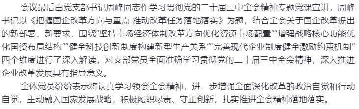 市菜篮子集团党委组织召开党的二十届三中全会精神宣讲