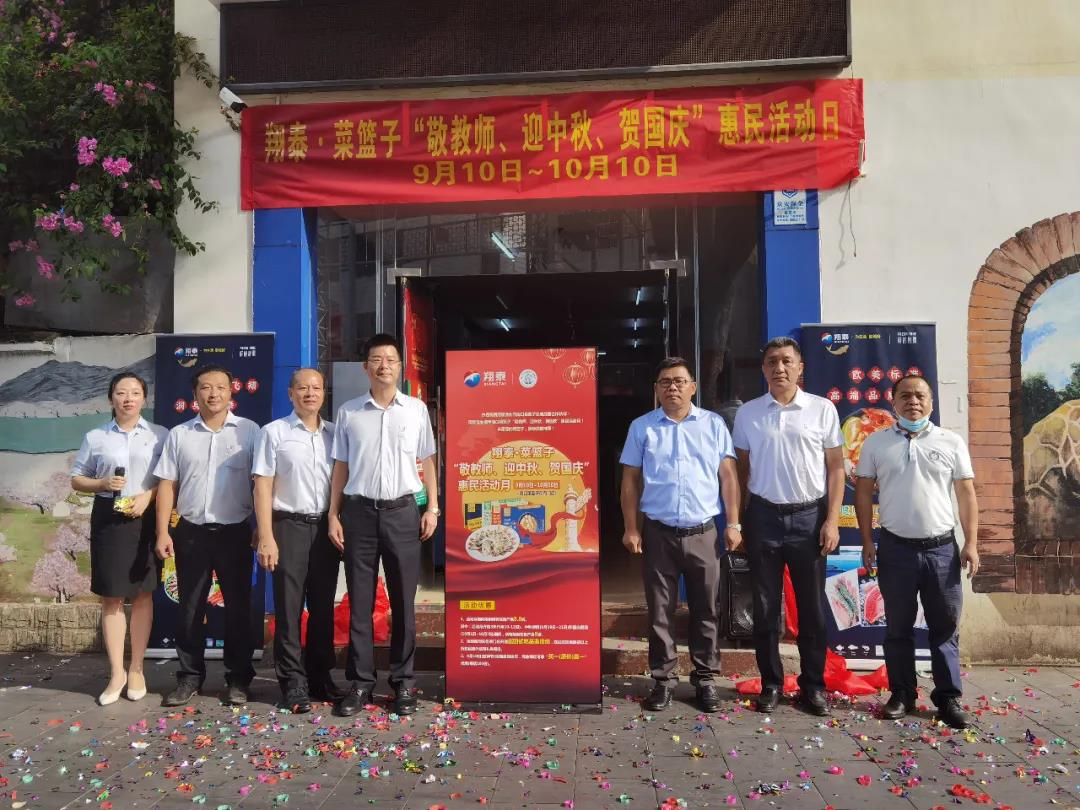 9月10日-10月10日菜篮子携手翔泰开展“敬教师、迎中秋、贺国庆”惠民活动月。活动期间,菜篮子门店内翔泰所有在售产品8.8折,其中:活动月开始3天(9月10-12日)、中秋假期(9月19日-21日)和国庆假期(10月1日-10月7日)期间,翔泰所有在售产品8折;9月10日(教师节)活动启动当天,凭教师证可享 “买一(原价)送一”优惠(每店100份)。活动期间将在各家门店开展巡回试吃品鉴活动,现场除按以上折扣优惠外还有礼品赠送。