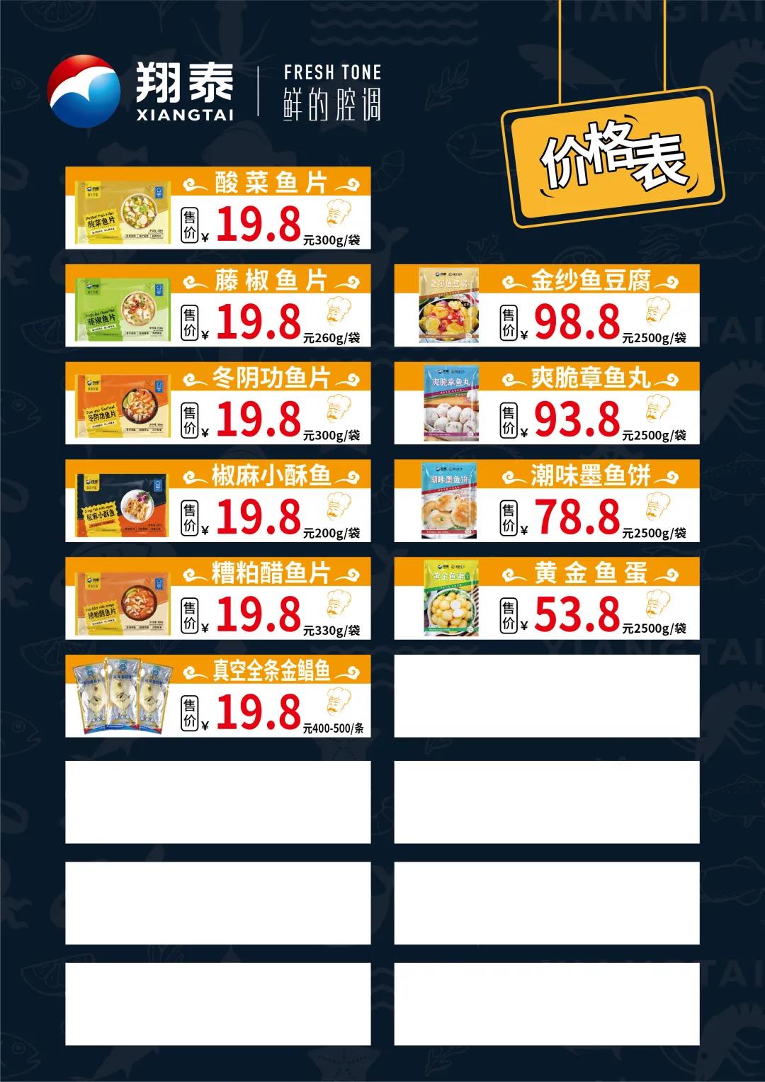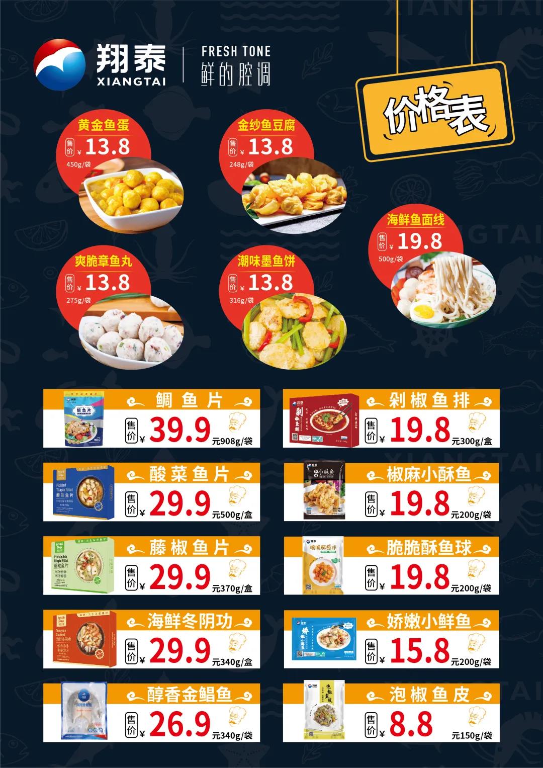 为切实惠及广大市民,实现双方合作意义,将陆续在32家菜篮子直营门店上架翔泰水产品,包括酸菜鱼、海鲜冬阴功鱼片、藤椒鱼片、黄金鱼蛋、金纱鱼豆腐、海鲜鱼面线及娇嫩小鲜鱼、金鲳鱼等产品,以高端的品质、亲民的价格带给市民满满的幸福感。