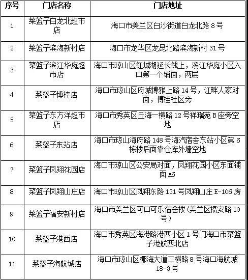以下菜篮子直营门店将陆续上架翔泰水产品,欢迎市民选购: