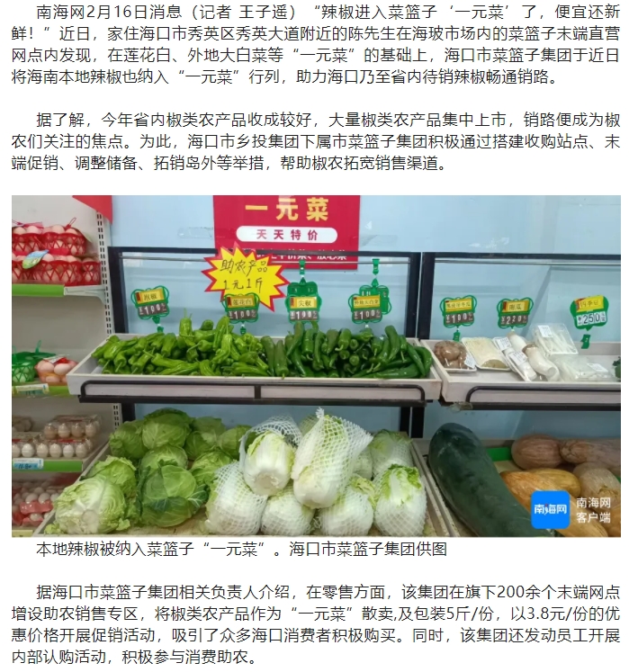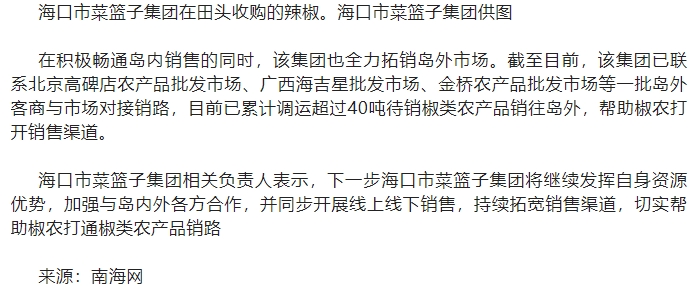 【南海网】待销辣椒纳入“一元菜” 海口市菜篮子集团积极助力本地辣椒拓销路
