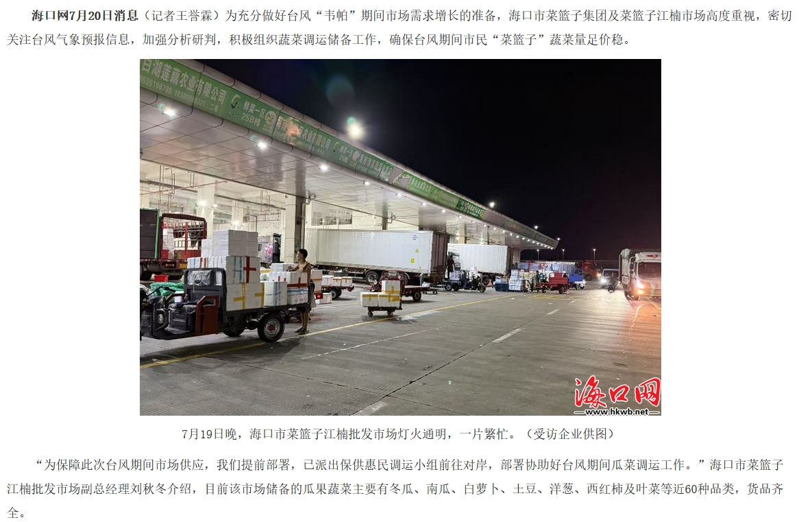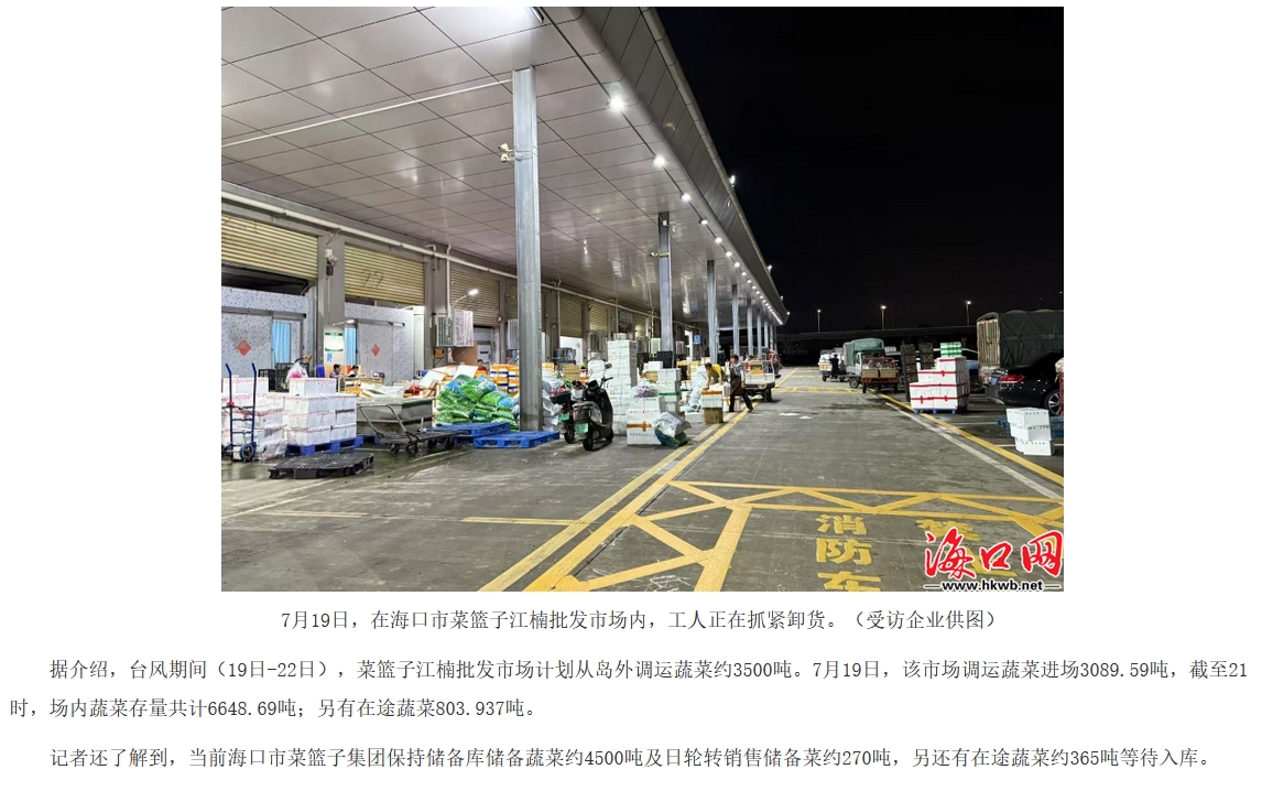 【海口网】海口市菜篮子江楠批发市场:加大调运储备力度,确保台风期间货丰价稳