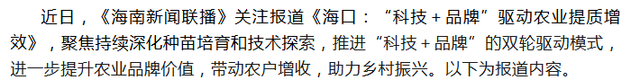 【媒体关注】海口:“科技+品牌”驱动农业提质增效