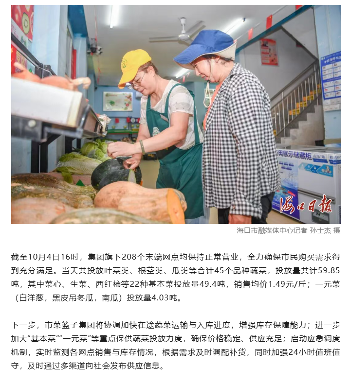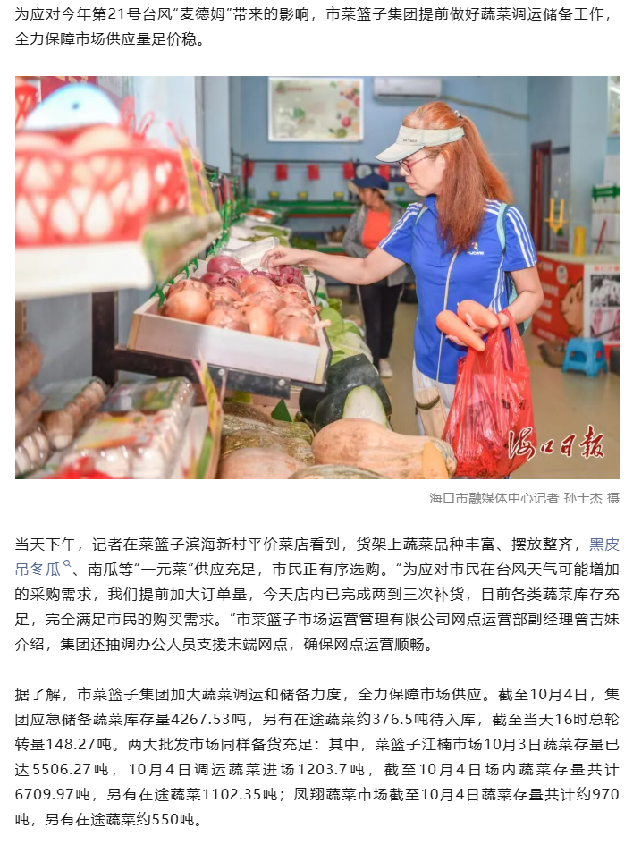 【海口日报】抗台风保供应!海口菜篮子超4000吨蔬菜应急储备待命