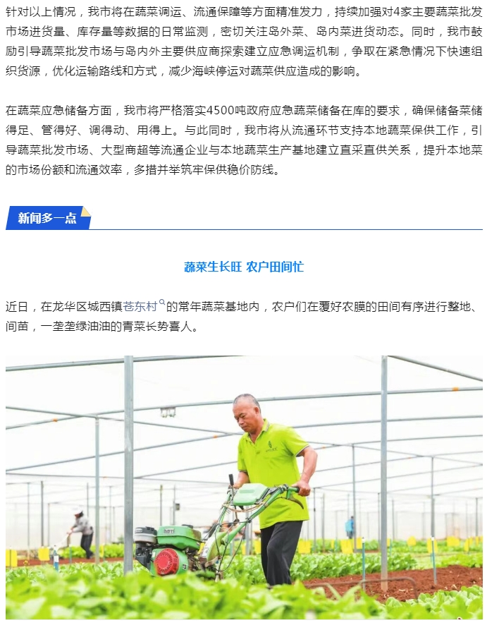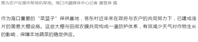 【海南日报】我省多措并举、全力推动蔬菜保供稳价 预计下月中旬后本地蔬菜上市量明显增加