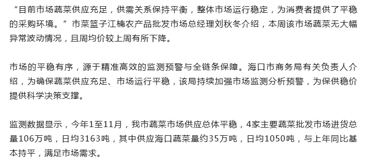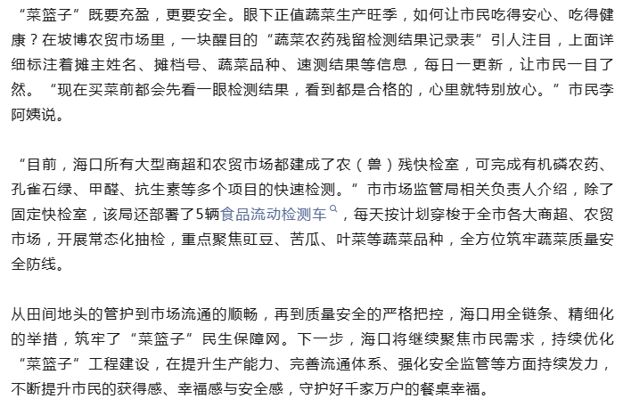 【海口日报】海口多管齐下拎稳“菜篮子” 护好“盘中餐”