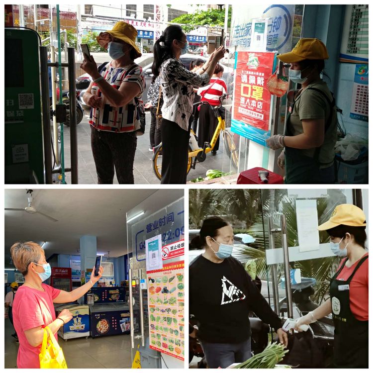 “请各位顾客佩戴好口罩,测量体温,分别扫描‘健康码’和‘地点码’,凭‘绿码’再进店购买……”4月6日起,在海口市菜篮子各直营门店、社区便民网点,各市民纷纷排队掏出手机,按照要求进行扫码,销售人员认真查码“两码”,确保每个人出示绿码后才准进入各网点选购。