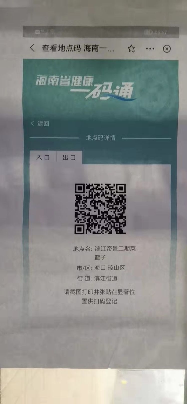 2022年4月5日,海南省新型冠状病毒肺炎疫情防控工作指挥部发布通知,从4月6日起,全省各市县严格落实出入重点场所扫“地点码”的防控措施。